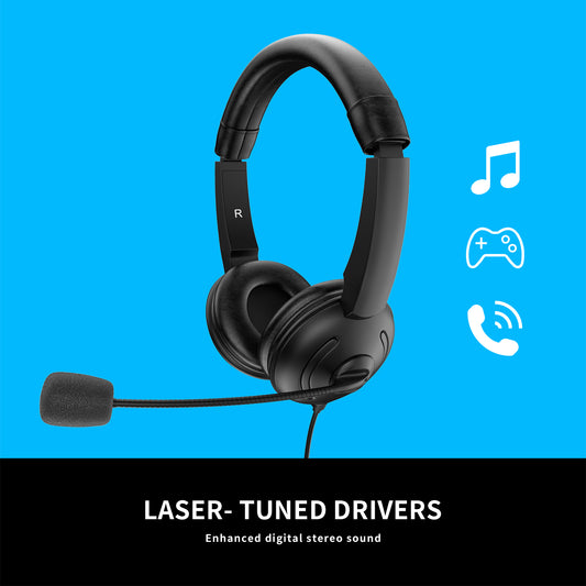 Sunsonics USB Headset with Mic for PC, On-Ear Computer Laptop Headphones with Noise Cancelling Microphone in-line Control for Home Office Online Class Skype Zoom (USB+3.5mm, Black
