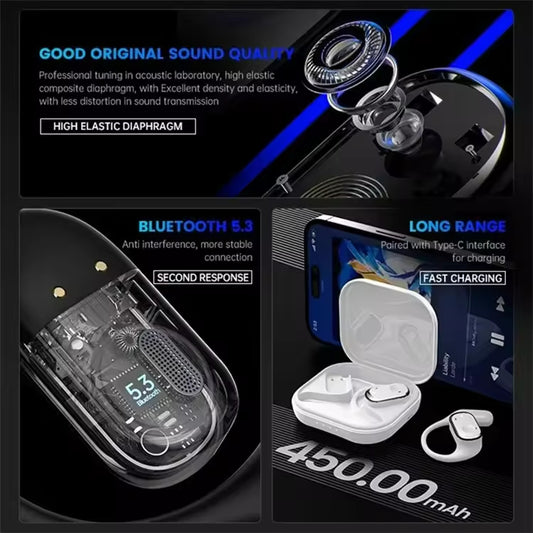 Sunsonics Earbuds Bluetooth 5.4 TWS Wireless Bone Conduction Earphones Open Ear Noise Canceling Headset Sports Gaming Earbuds